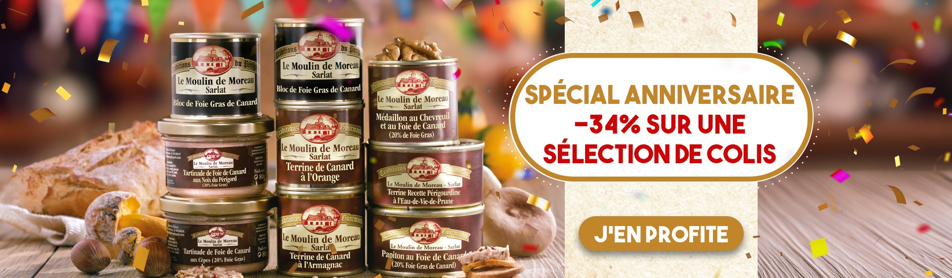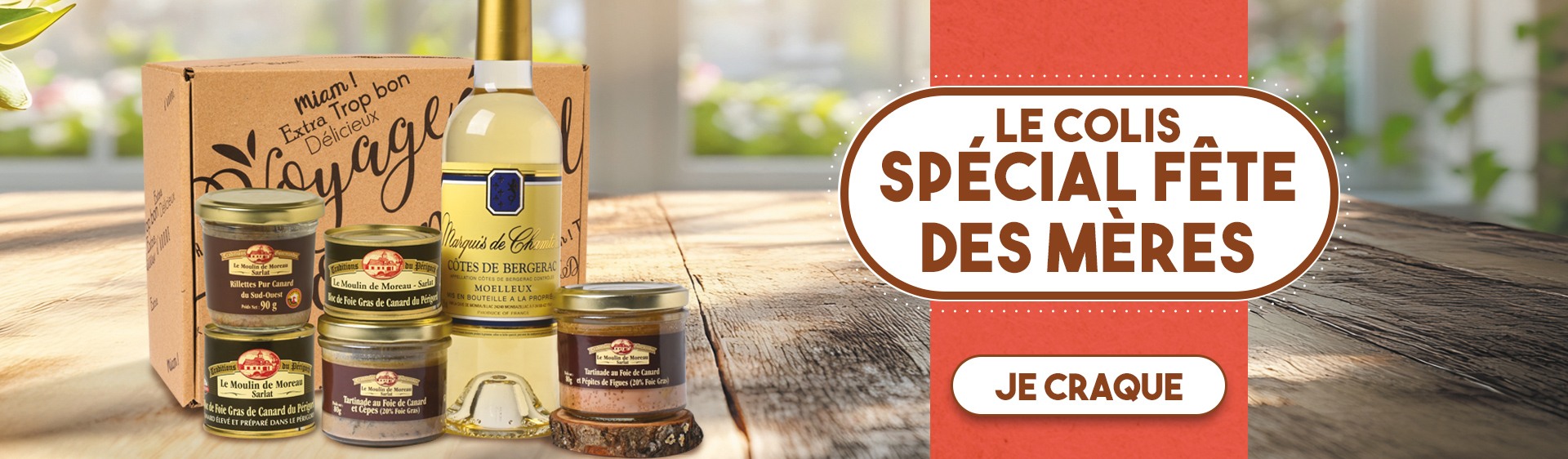 Si Traditions du Périgord sait satisfaire les amateurs de spécialités du Sud-Ouest (le foie gras, confit de canard, magret de canard, cassoulet...), nous proposons également un incontournable : les colis gourmands. Pour chaque occasion, ils sont l’assurance d’un cadeau réussi. Soyez sûr de faire plaisir à vos proches grâce à un panier garni avec nos meilleurs produits, lots de terrines et pâtés, bocaux de spécialités cuisinées, meilleurs vins de la région sélectionnées pour accompagner vos plats. Partez à la découverte de la Dordogne et retrouvez ainsi toute la richesse du terroir de France dans nos spécialités Traditions du Périgord.