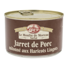 Ingrédients : Jarret de porc 40% (origine : France), haricots lingots 34%, eau, graisse de canard, purée de tomates double concentrée, sel, ail, persil, poivre.